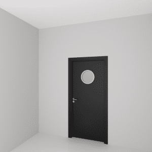 Porta de uso interior para entrada de unidade autônoma e demais ambientes internos com necessidade de visibilidade ou iluminação através da porta, em ocupação Pública, Coletiva ou Privada.