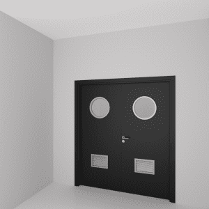 Porta de uso interior para entrada de unidade autônoma e demais ambientes internos com necessidade de visibilidade ou iluminação e também de ventilação através da porta, em ocupação Pública, Coletiva ou Privada.