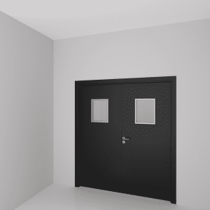 Porta de uso interior para entrada de unidade autônoma e demais ambientes internos com necessidade de visibilidade ou iluminação através da porta, em ocupação Pública, Coletiva ou Privada.