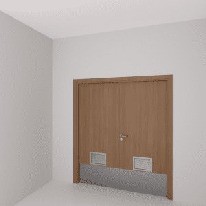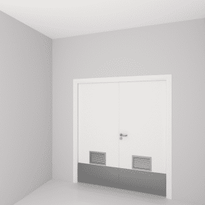 Porta de uso interior para entrada de unidade autônoma e demais ambientes internos com necessidade de alta proteção a impactos na base inferior (Inox 400mm), além de ventilação através da porta, em ocupação Coletiva ou Privada.