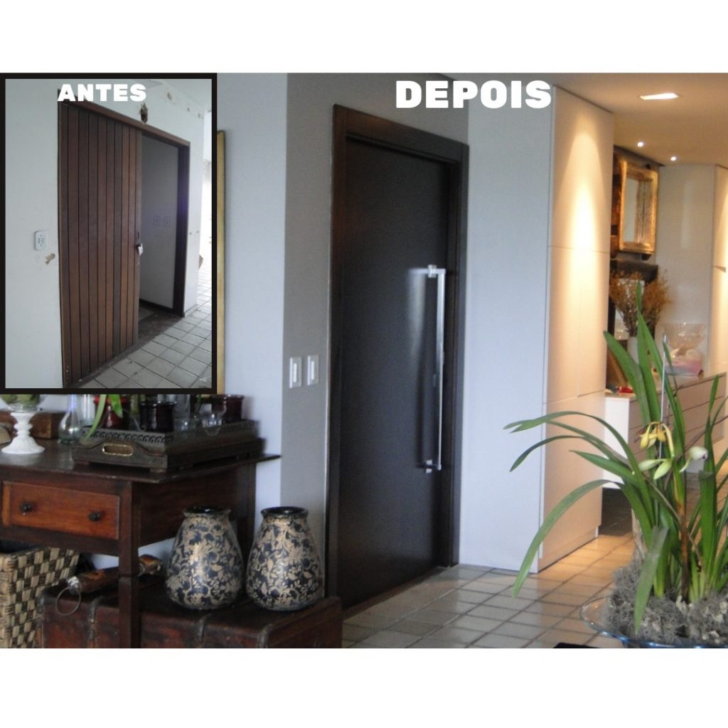 A renovação do apartamento ficou completa com a troca de todas as portas, retrofit de sucesso planejado e executado com a familia morando no imóvel.