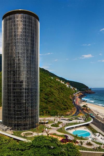 Único projeto de Hotel de Oscar Niemayer, após varios anos fechado, para a reabertura foi efetuado um retrofit nas portas de entrada dos apartamentos, incluindo o desempenho acústico e resistencia ao fogo 30 min.